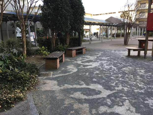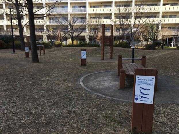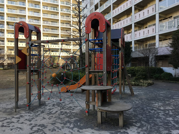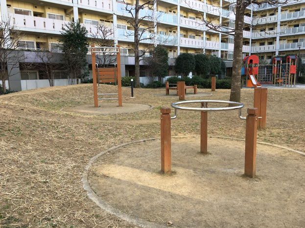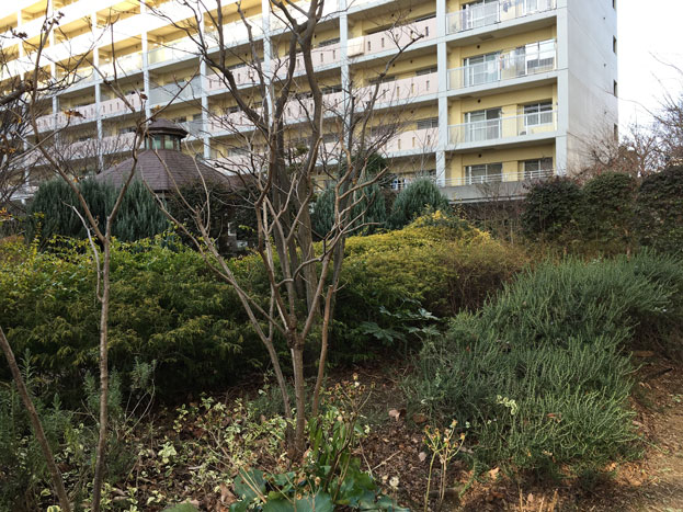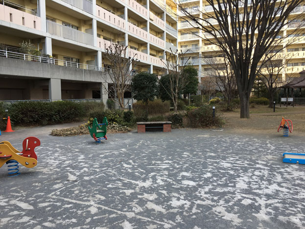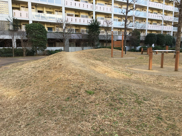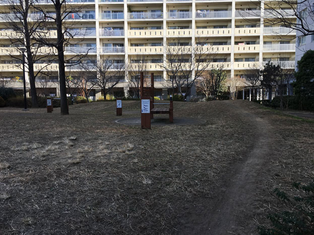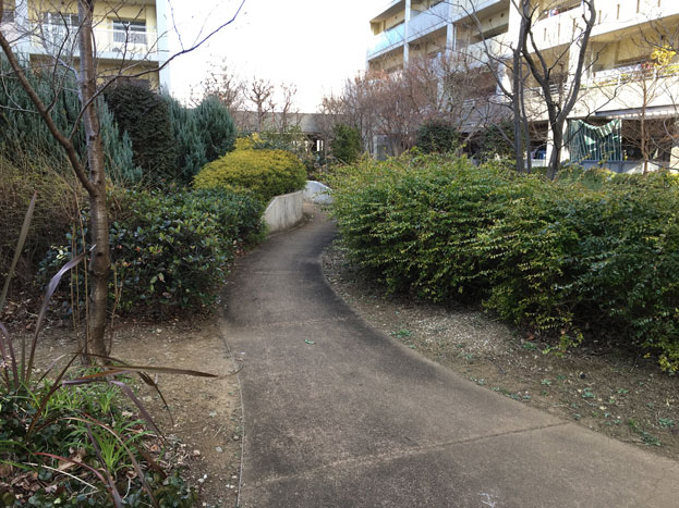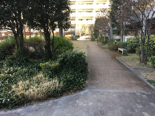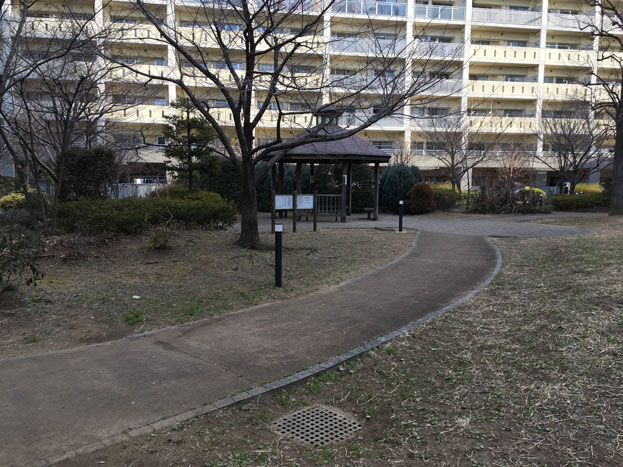 URマンションライフタウン国領の中庭にある、小さな散策路もある公園。。