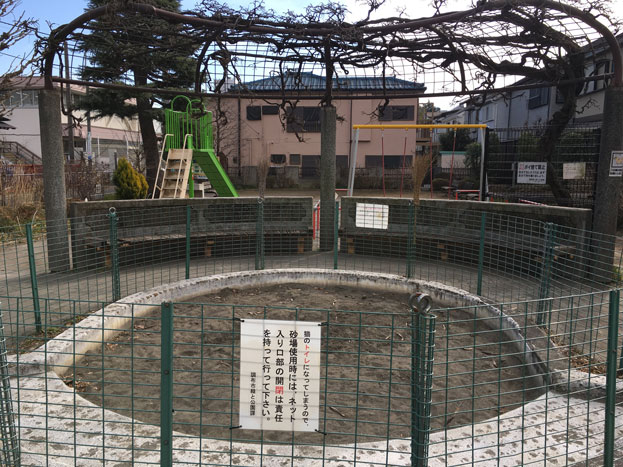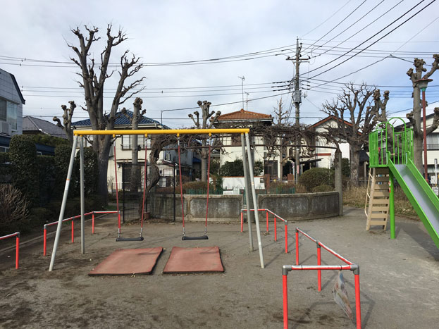 調布インター近くの住宅地にある、L字型の公園。