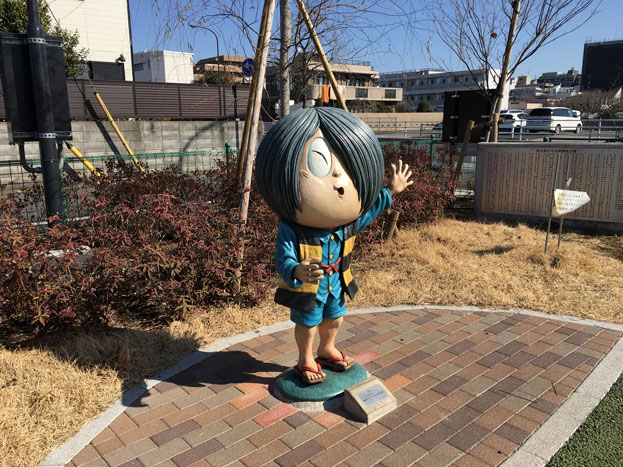 アニメ「ゲゲゲの鬼太郎」のキャラクターのオブジェや遊具がいっぱい。