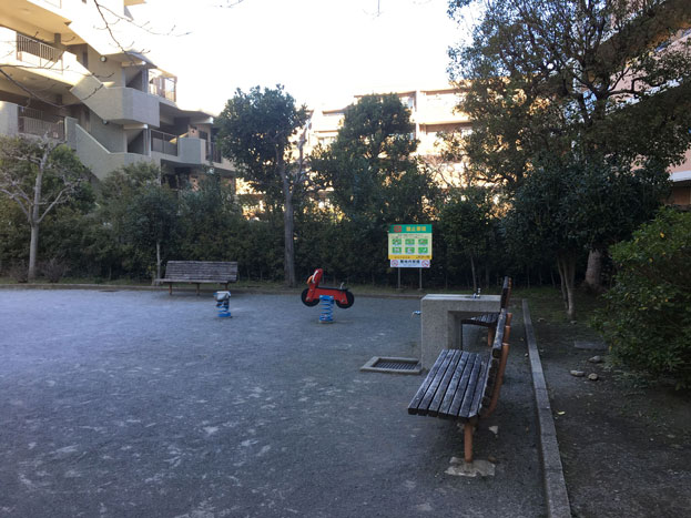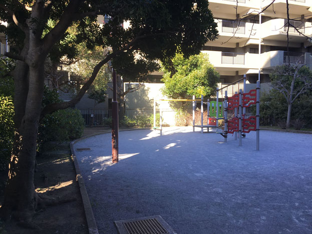 染地のマンションの狭間にある、小さな公園。