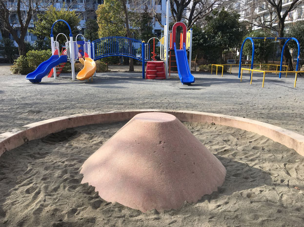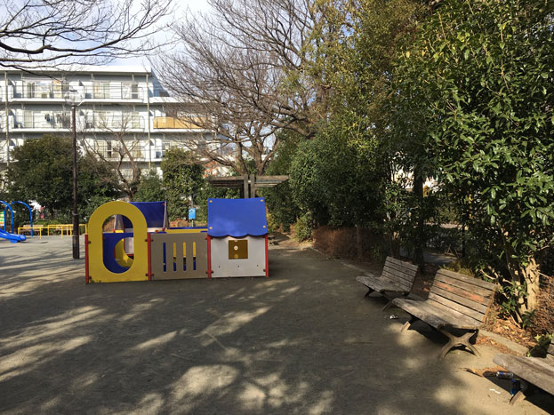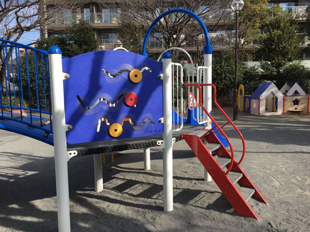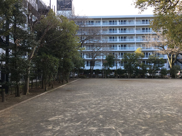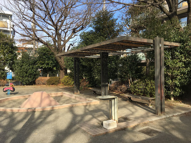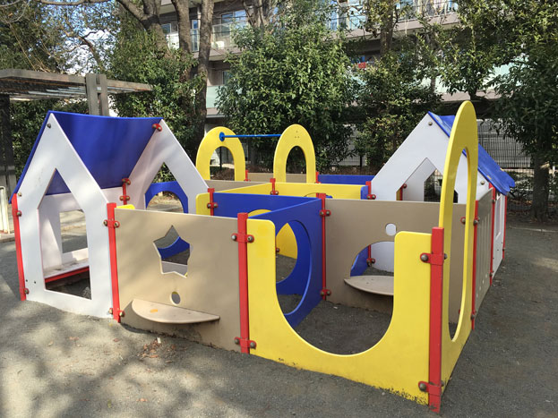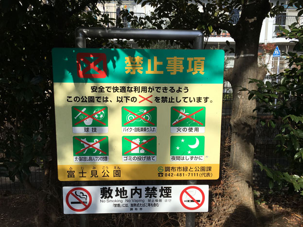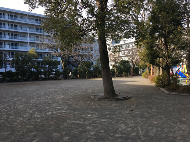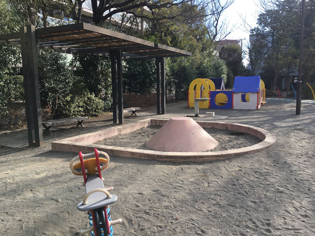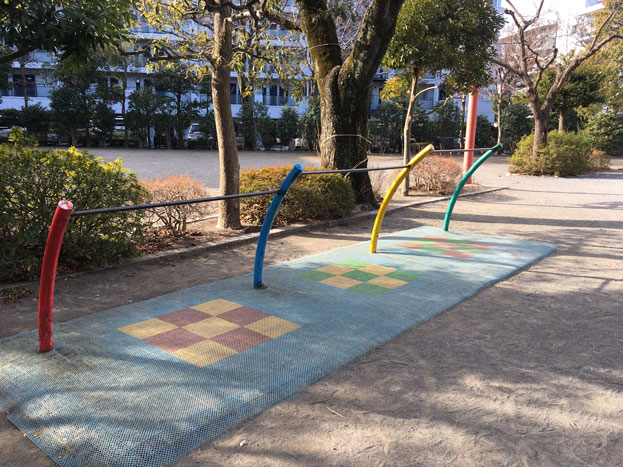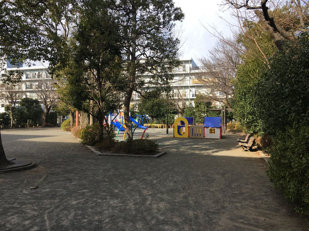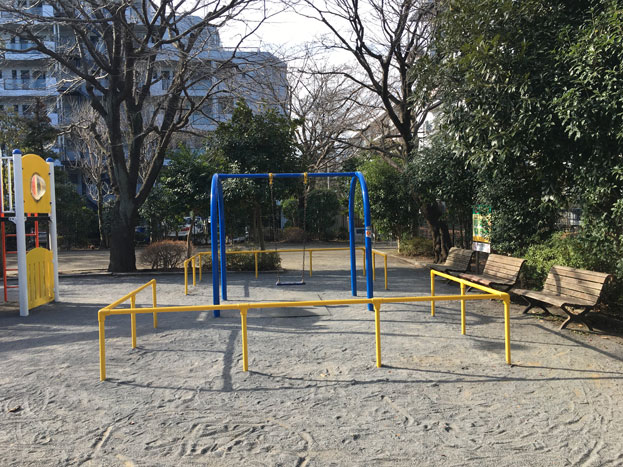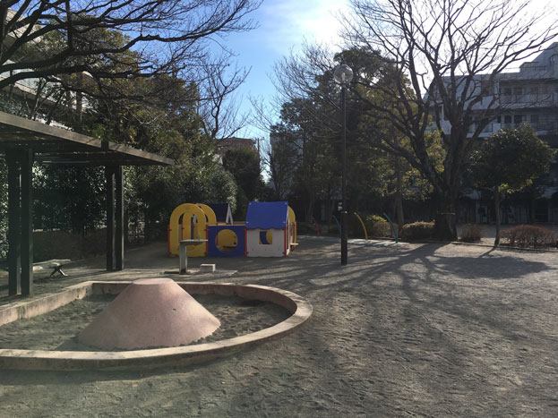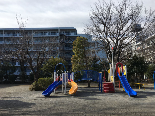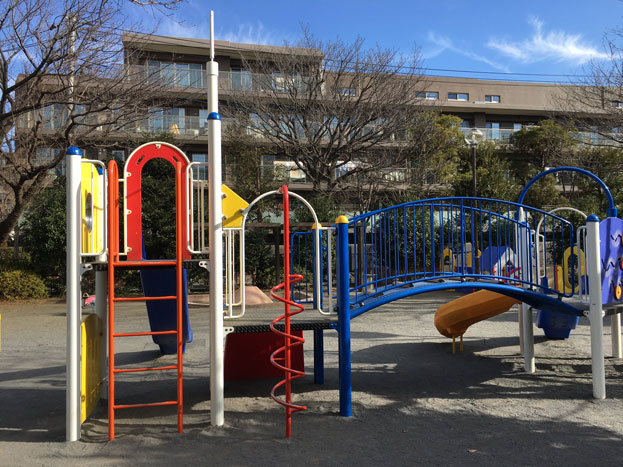 遊具のあるエリアと多目的広場に分かれた、電気通信大学の裏にある公園。