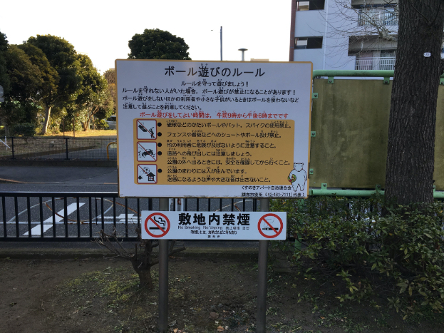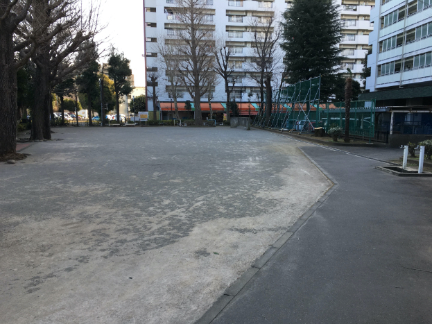 調布くすのきアパートにある、壁あてやボールあそびができる公園。。